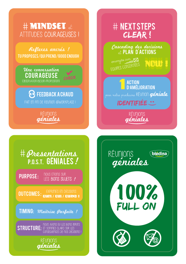 En collaboration avec l'équipe de communication interne de BLEDINA, nous avons conçu un jeu de cartes destiné à animer les réunions d'équipe. Ce projet a permis de rendre les réunions plus agréables, dynamiques et productives.