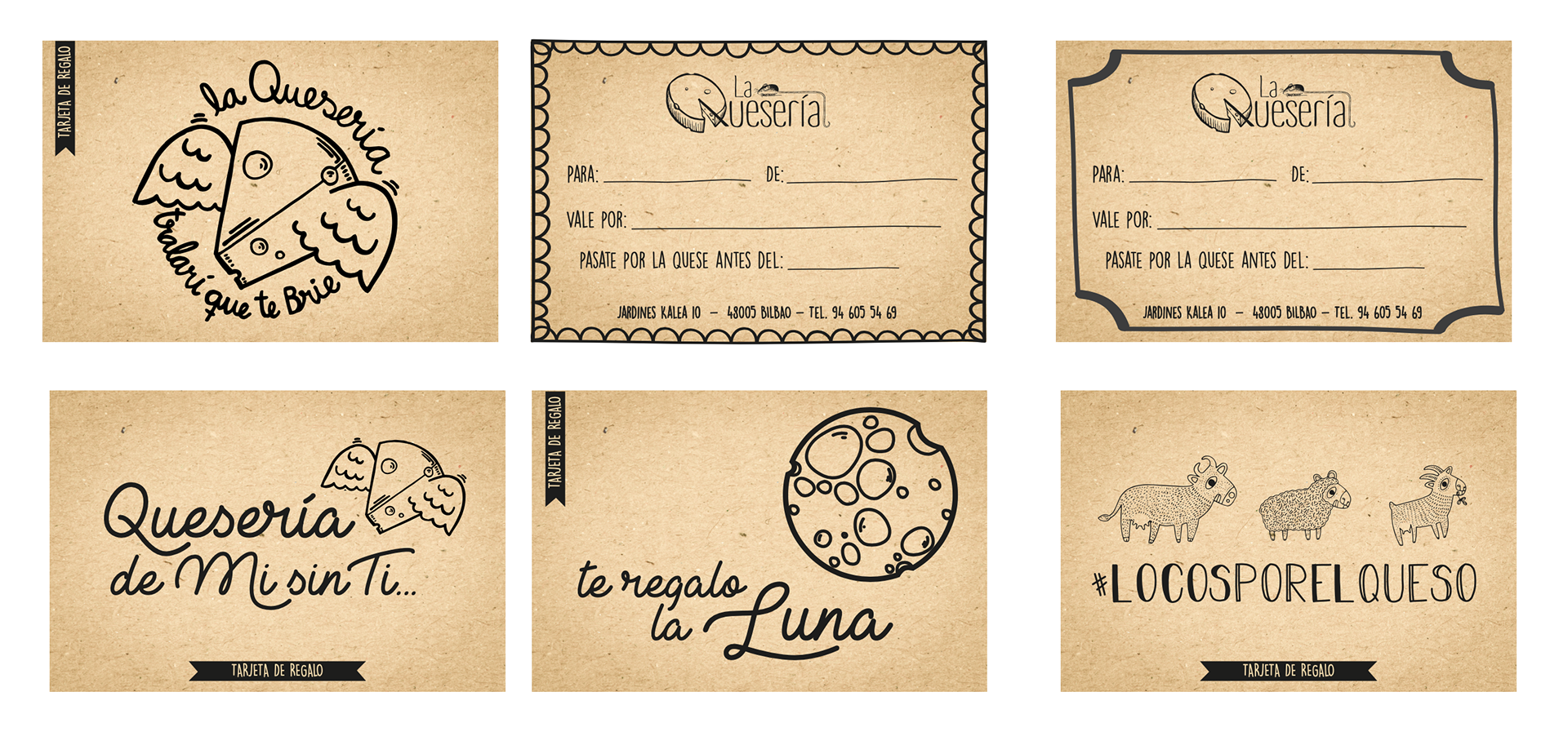 Conception du logo et des supports graphiques pour 'La Quesería', fromagerie située à Bilbao.